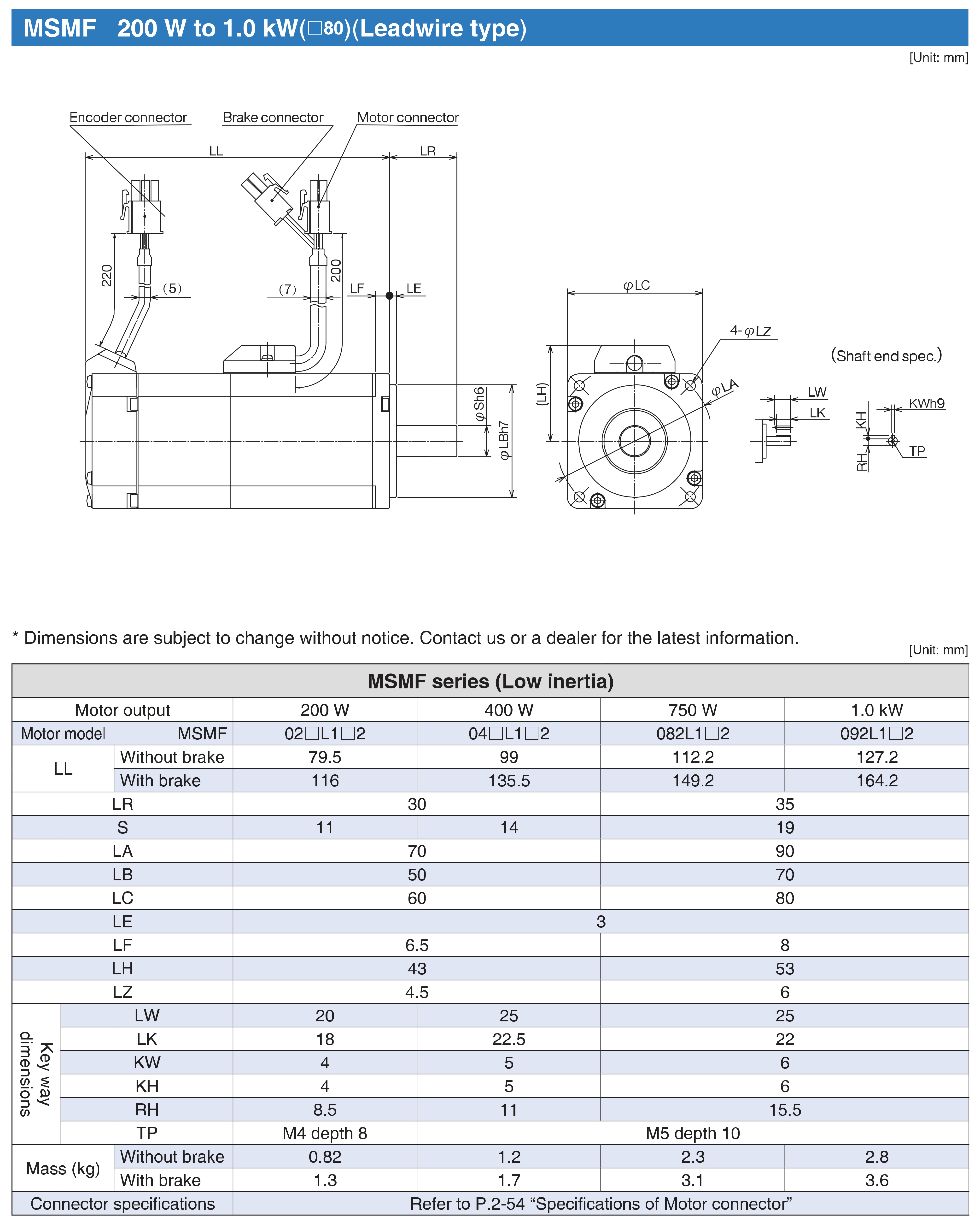 MSMF042L1U1 400W , 1.27 Nm , 3000 rpm Servo Motor